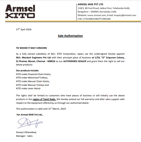 Welcome to Mactech Engineers Pvt Ltd, a stalwart in the industrial products arena since our establishment in 2010. With over a decade of dedicated customer service, we have earned our reputation as a trusted partner for businesses seeking excellence. Located in Chennai, we stand proud as a premier source for premium industrial products, serving as a cornerstone for the thriving automotive and general engineering industries. As renowned suppliers and distributors, we offer an extensive array of high-quality industrial solutions that cater to your diverse needs. Our product range encompasses a wide spectrum, including essential Industrial Safety products, as well as crucial components like Cranes, Hoists, Carbide Cutting Tools, Power tools, Pneumatic tools and Hand tools. we also provide essential Industrial Adhesives, Abrasives, and Band Saw Blades, ensuring that your processes run seamlessly.